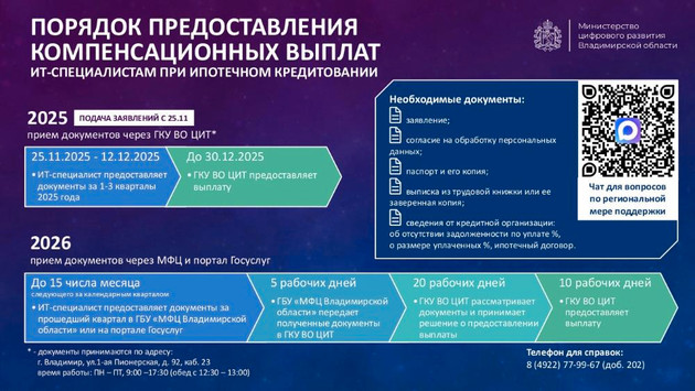 Для получения компенсационной выплаты помимо действующего ипотечного договора претендент должен иметь работу в аккредитованной ИТ-компании области, жилье, в том числе на стадии строительства на территории области и не иметь долгов по договору ипотеки.