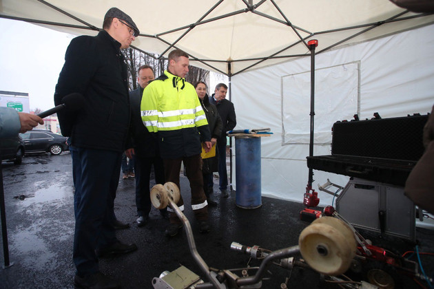 Но есть и другой подход: специалисты с помощью робота очищают старую трубу и внутрь протягивают новый рукав. Исполнители работ продемонстрировали губернатору оборудование, которое для этого используется. Надежность сетей повышается, зато не надо потом восстанавливать дорожное покрытие и благоустройство, и нет необходимости мешать нормальной жизни горожан глубокими раскопами.