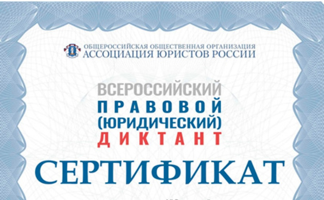 Ассоциация юристов России проводит ежегодный Всероссийский правовой (юридический) диктант на официальном портале юрдиктант.рф. Это масштабный просветительский проект в форме добровольного тестирования, направленный на проверку и повышение уровня правовой грамотности граждан. (12+)