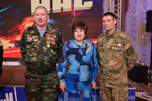 Девизом торжественного собрания были слова: «Время выбрало нас». И главными его героями стали участники продолжающегося ныне противостояния - специальной военной операции. Поэтому лица героев СВО смотрели на участников собрания с выставок «Zа Россию» и «Уголь земли Русской» в фойе.