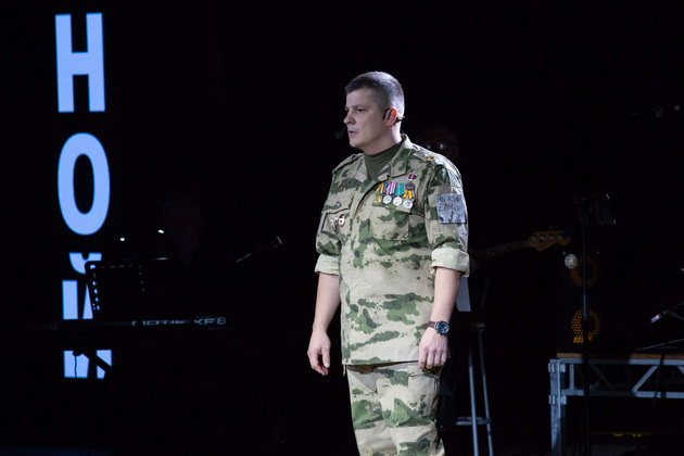 И среди вокальных номеров нашлось место поэзии. Выступали герои специальной операции, которые в наши дни «к штыку приравняли перо». Причем - перо поэтическое. Они выходили на сцену под позывными: Турист, Гризли, Завхоз, Бах. Был среди них и офицер-стихотворец с позывным Поэт - это гвардии капитан Руслан Даутов (Стоцкий).