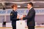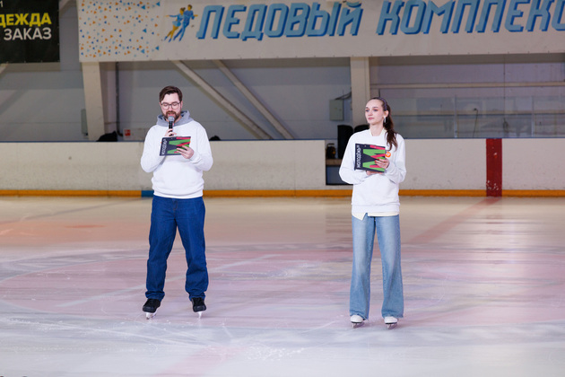 Церемония сопровождалась показательным выступлением юной фигуристки и мотивирующими песнями.