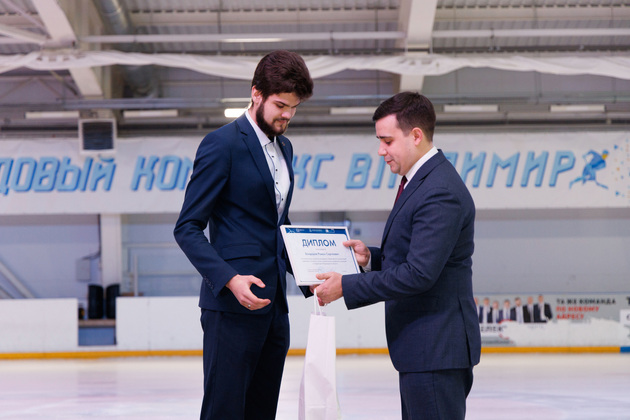 А вручение дипломов продолжил депутат Законодательного Собрания области, директор ледового комплекса «Владимир» Алексей Метелкин.