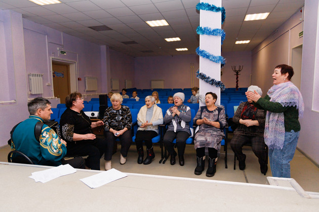 Филиал районного ДК в деревне Ильино Ковровского района встретил нас звуками аккордеона и хоровыми распевами. Здесь шла репетиция хора к новогоднему празднику.