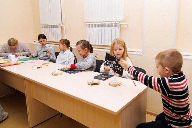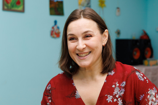 Оксана, видя такую непосредственную реакцию детей, тоже заряжается всеобщим весельем и вспыхивает в улыбке. Очевидно, ей нравится заниматься с детьми. По образованию она психолог, и раньше работала по специальности в детском саду в Коврове.