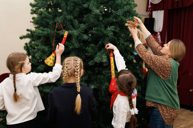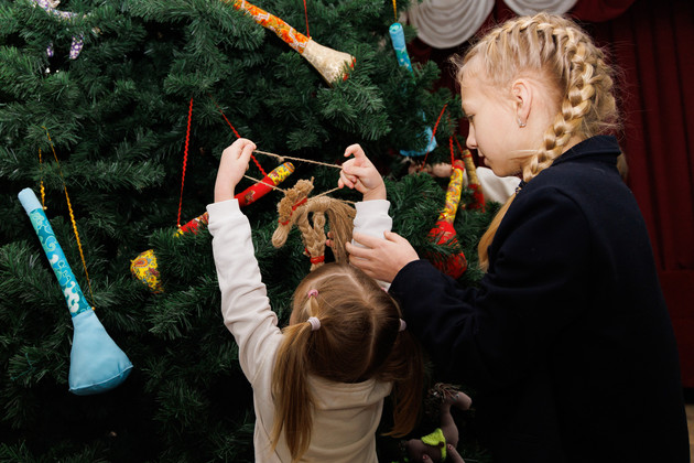 Юные мастерицы с гордостью показали мне сделанные своими руками тканевые рожки. Это такие оригинальные украшения. Совсем скоро их водрузят на елку.