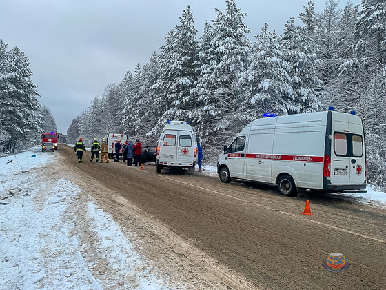 Авария произошла на заснеженной трассе 27 декабря. От диспетчера города Камешково спасатели узнали о ДТП между деревнями Новая Печуга и Песочное.