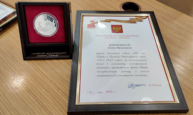 Памятной медали «80 лет Победы в Великой Отечественной войне 1941-1945 годов» от Российского организационного комитета «Победа», - а это престижная федеральная награда за подписью президента Владимира Путина, - удостоены: директор Владимирского академического областного драматического театра Борис Гунин, замдиректора по учебно-производственной работе Муромцевского лесотехнического техникума, один из лидеров поисковиков региона Вячеслав Казаков; глава администрации Нагорного сельского поселения Петушинского района Ольга Копылова; председатель Совета ветеранов Юрьев-Польского района Алла Ивановна Землизина; руководитель военно-патриотического клуба «Дороги Победы» из Камешковского района Сергей Шабалин; председатель общественного Совета при администрации Гусь-Хрустального района (ныне округа), гусевской краевед, музейщик, писатель Николай Скулов и консультант одного из отделов министерства молодёжной политики области Сергей Титоров.