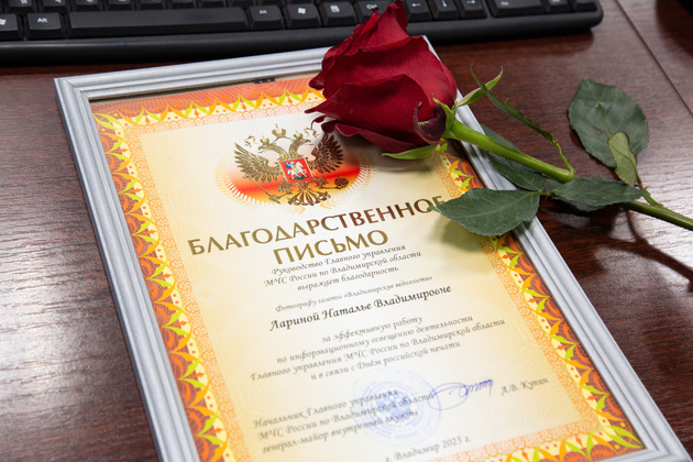 В завершение пресс-конференции уже по традиции Алексей Купин вручил благодарственные письма руководства ГУ МЧС журналистам за совместную работу в информировании жителей. Из состава редакции «Владимирских ведомостей» в этом году награждены фотокорреспондент Наталья Ларина и обозреватель Александр Известков. Впрочем, в редакции нет ни одного журналиста, который не публиковал в течение года информации
