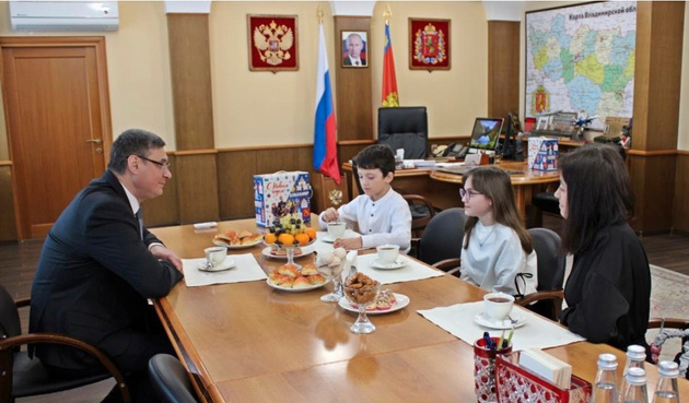 29 декабря гостями губернатора стали Саша и Арина из Меленок. Они получили загаданные подарки, попили чай с главой региона, рассказали ему о своей учёбе и увлечениях. Домой вместе с мамой ребята привезли сестрёнке новогодние гостинцы от Александра Авдеева, сообщает пресс-служба правительства.