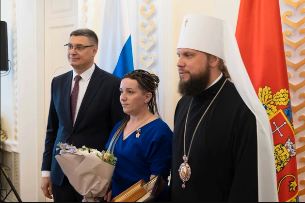 Награды матерям-героиням и областные знаки отличия примерным семьям в тот день в областном Доме дружбы вручал губернатор Александр Авдеев с участием митрополита