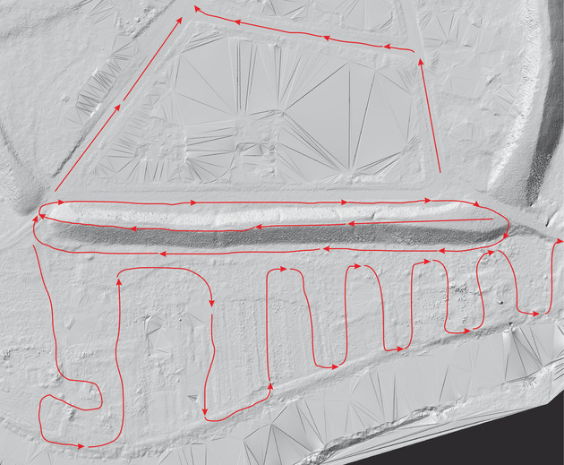 Маршрут лазерного сканирования Суздальского кремля в 2025 году спланировали так, чтобы отсканировать все выраженные в рельефе объекты. В результате камеральной обработки ученые получили отклассифицированное облако точек, на основе которого построили 3D модель поверхности, топоплан и светотеневые изображения.
