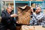 - Это пестель - традиционная русская сумка-кошель из бересты. Смотрите, как при использовании берестяное плетение прогнулось под спину прадеда Елены и сохранило ее отпечаток.