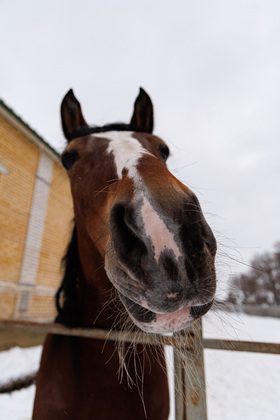 А вот жеребец Гехест (не путать с Гефестом!). У него очень добрый нрав и покладистый характер. Он общителен даже с незнакомцами. К каждому подойдет, всех обнюхает, поздоровается. Мы угостили Гехеста яблочком и попросили удачи в новом году.
