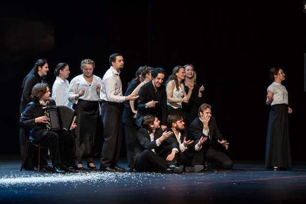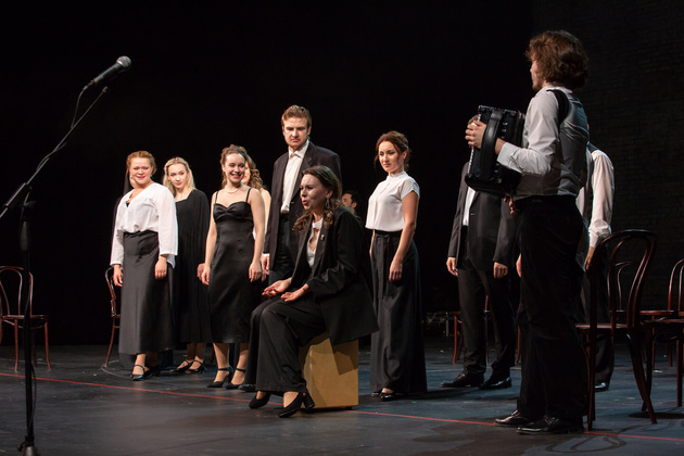 А в фойе театра открылась фотовыставка работ Петра Соколова, Владимира Федина, Константина Федяева из архивов Владимирской драмы, выставка сценических костюмов Мастера.