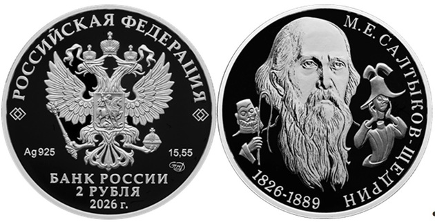 Монета сделана диаметром 33 миллиметра. Выпущено всего три тысячи экземпляров. На лицевой стороне изображен герб нашей страны с надписью «Российская Федерация», название банка, стоимость монеты, год выпуска, химический символ серебра, пробы, фирменный знак монетного двора и вес чистого металла. На оборотной стороне - рельефные изображения портрета Салтыкова-Щедрина и фигур градоначальников города Глупова из произведения «История одного города»; по окружности расположены надписи: справа - «М.Е. САЛТЫКОВ-ЩЕДРИН», внизу слева – «1826-1889».