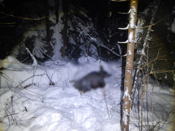 В середине января в лесу возле поселка Новки был обнаружен застреленный лось. Тут же прибывшие сотрудники полиции увидели следы обуви, а недалеко от места – мотосани. Браконьер был найден и задержан стражами порядка, что называется, по горячим следам. У него были изъяты охотничье ружье и 21 патрон к нему.