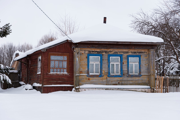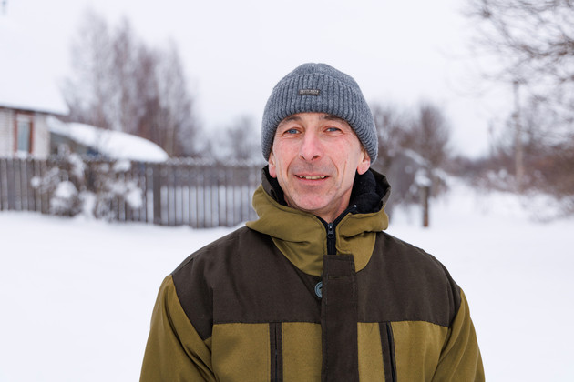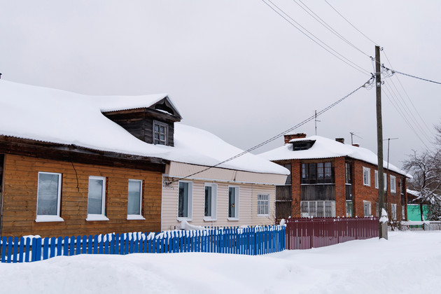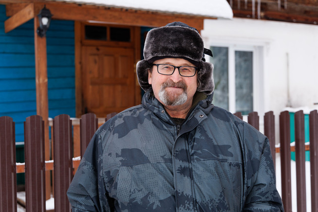 Несколько минут по хорошо накатанной снежной дороге - и мы уже в поселке имени Фрунзе. Возле одного из домов нас встречает мужчина ‑ в ушанке и теплой куртке.