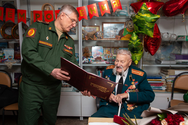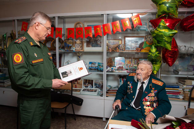 По-военному четко, но с большой теплотой поздравил Адольфа Константиновича Буреева представитель военного комиссариата области полковник Сергей Сливин.