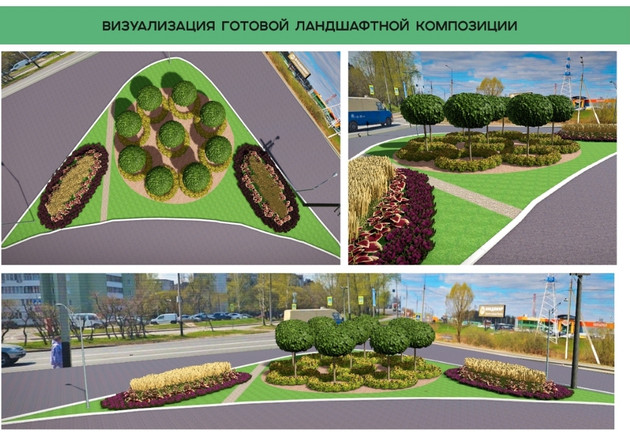 А въезд со стороны Москвы украсят композиции из различных видов рябин. Их дополнят клумбы из многолетних и однолетних цветов и злаковых растений - вейник и луговик дернистый, которые придадут цветникам легкость, объем и природный стиль.