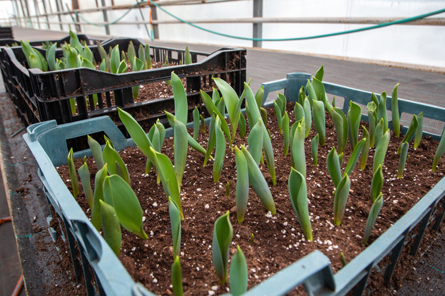 Озеленитель Наталья Ломакина раскрыла полупрозрачное «одеяло», накинутое на ящики с цветочными сеянцами, выращенными из семян. В каждом контейнере - от двух до двух с половиной тысяч ростков. Нежная зелень первых всходов бегоний, бархатцев и виол сейчас выглядит особенно хрупкой и беззащитной. В разгар зимы растения полностью во власти человека.