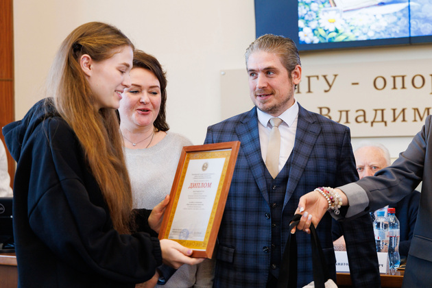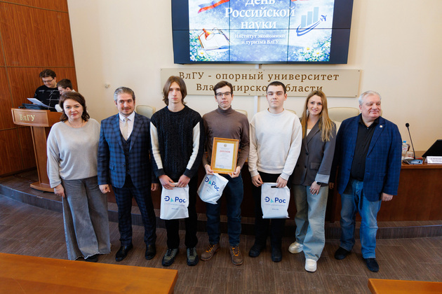 Конечно, в честь профессионального праздника ученых уделили внимание развитию науке в Институте экономики и туризма. Дмитрий Козлов напомнил о высоких достижениях по ключевым научным дисциплинам. Например, в 2025 году более 200 студентов стали победителями разных научных конкурсов. А двое удостоены престижных федеральных стипендий имени Егора Гайдара. Всего таких стипендий по всей России присуждается десять, так что 20 процентов стипендиатов учатся в этом институте во Владимире.