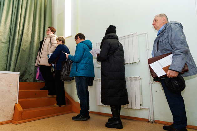 Длинная очередь дольщиков (в доме всего 548 квартир) на регистрацию и голосование растянулась даже вниз по лестнице.