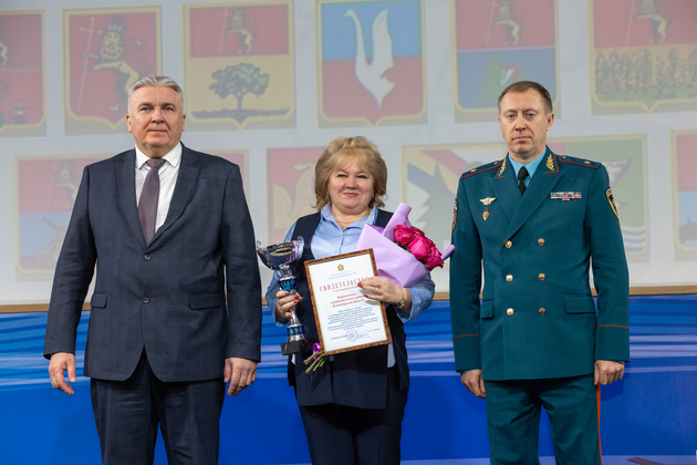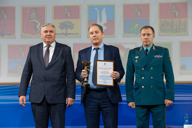 Затем состоялось награждение лучших сотрудников ведомственными наградами и почетными грамотами МЧС России и благодарственными письмами правительства области и ЗС.