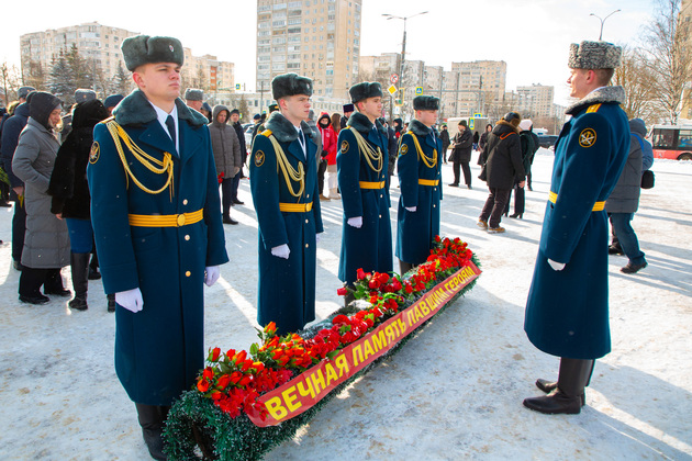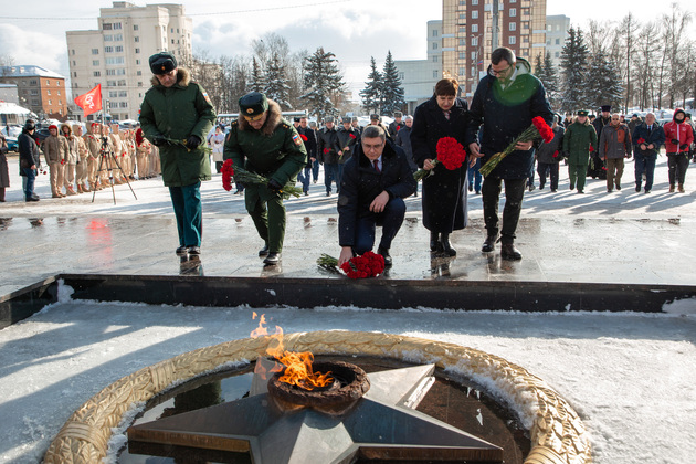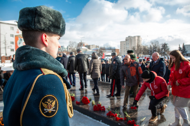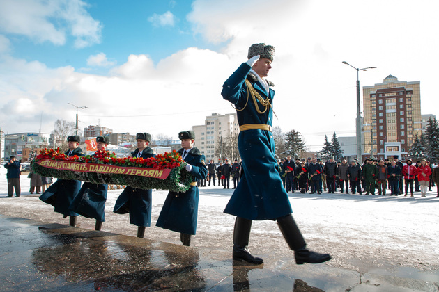 Речей на площади не было. Поздравления и выражения признательности защитникам Отечества прозвучали на областном торжественном мероприятии в областном Дворце культуры и искусства и на городском торжественном собрании в Доме культуры молодежи.