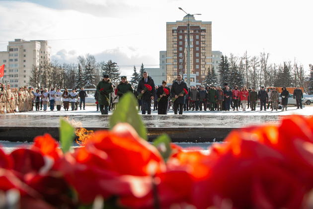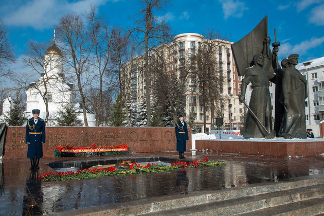 Затем возложили цветы к мемориалу губернатор Александр Авдеев, председатель Законодательного Собрания Ольга Хохлова, исполняющий полномочия главы города Владимира Сергей Волков, главный федеральный инспектор Игорь Гречуха, председатель облизбиркома Вадим Минаев, председатель городского Совета Николай Толбухин, начальник ВЮИ ФСИН России генерал-майор внутренней службы Алексей Кочетов, руководители региональных управлений правоохранительных и силовых структур, других федеральных органов, командиры воинских частей и другие военные, представители общественных организаций, ветераны и просто активные жители города. Из числа активной молодежи выделялись шеренги «Волонтеров Победы», юнармейцев.