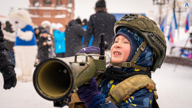 Пока шла погрузка, площадь жила праздничной жизнью. Взрослые и дети проверяли меткость в тире, грелись горячим чаем и солдатской кашей, фотографировались с символом «Единой России» — белым мишкой, и писали теплые слова бойцам на открытках.