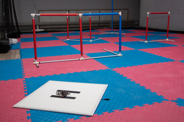 Задача пилота - как можно быстрее и точнее преодолеть маршрут. Из технических средств - FPV-очки и джойстик, с помощью которого можно управлять «птичкой». По размеру беспилотник действительно как небольшая птаха: диагональ рамы - 75 мм, а вес - граммов сорок.