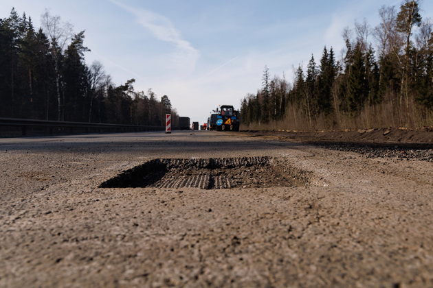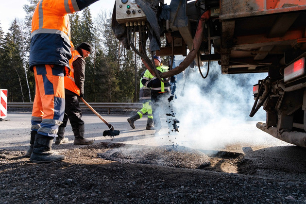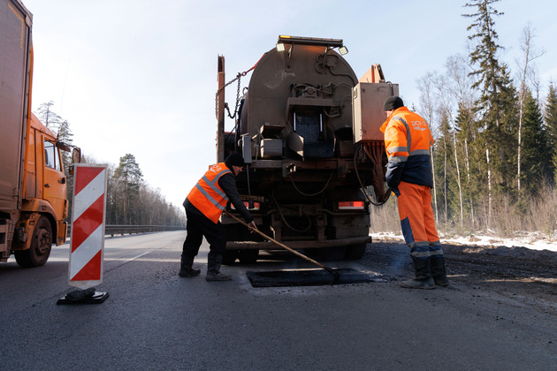 - Мы сейчас находимся на 229-м километре автомобильной дороги М-7 Волга по направлению движения в сторону Москвы. В данный момент производятся работы по ямочному ремонту литой асфальтобетонной смесью для устранения выбоин и разрушений на проезжей части. Эта смесь применяется специально для выполнения ямочного ремонта как раз при пониженных температурах, неблагоприятных погодных условиях. Она характеризуется высоким содержанием битума, что позволяет заполнить все поры выбоины и избежать излишнего уплотнения.