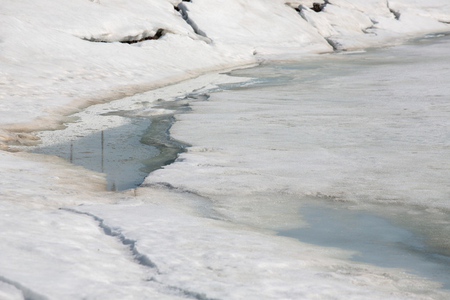 Если температура воздуха выше нуля держится более трёх дней, плотность льда снижается на 25%. Определить надёжность покрова можно визуально: голубой лёд – наиболее прочный, белый – в два раза менее надёжен, а серый, матово-белый или с желтоватым оттенком свидетельствует о высокой опасности.