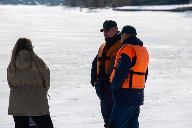 «Сейчас проходит акция «Тонкий лёд» совместно с администрацией [города Владимира], представителями МЧС России. То есть выход на лёд запрещён на данный момент. Но как мы видим, рыбаков это не пугает. Так как они все уверены в том, что с ними ничего не случится. Вот раздаём им памятки, что делать, если всё-таки вы провалились под лёд. Будем надеяться, что словом убедим их больше не приходить на лёд в данный период времени».