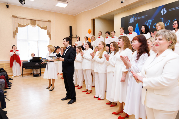Вокал тоже был на высоте благодаря выступлению хора педагогов из замечательного проекта «Хоровая лаборатория», который ведет доцент ВИРО, Почетный работник общего образования, композитор и дирижер Ольга Куликова. Прозвучали хоровые композиции «Учительская вселенная» и «Нужны России гении». Среди вокалисток пела и одна из участниц конкурса - учитель музыки Красногорбатской школы Наталья Любимова.