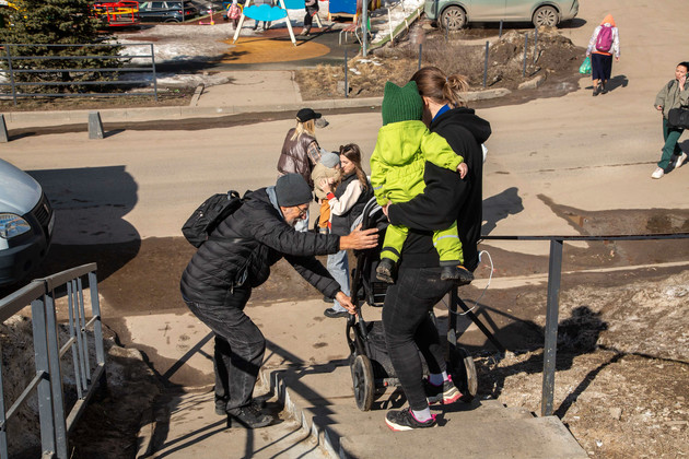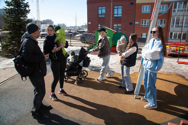 Две из них, Маргарита и Анастасия, пришли с маленькими сыновьями в колясках. А Татьяна ребенка не взяла. Потому что, по ее словам, живет здесь уже с 2022 года, и за время различных сбоев с подъемниками на переходе ее младший успел подрасти и уже сам ходит в садик за дорогу по ступенькам.