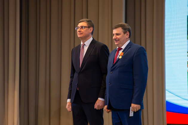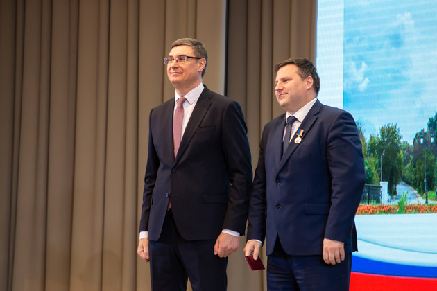 Медаль «За трудовые заслуги» губернатор вручил заместителю главы администрации округа Муром Василию Вахляеву и начальнику управления имущественных и земельных отношений Кольчугинского муниципального округа Марине Денисовой.