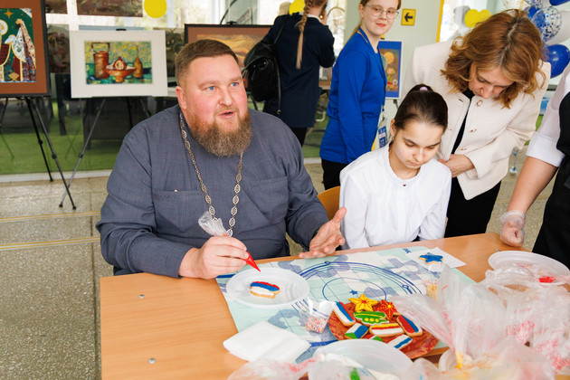 В мастер-классах попробовали себя и спикеры церемонии открытия, как, например, священник, ключарь Свято-Казанского храма Евгений Алексеенко.