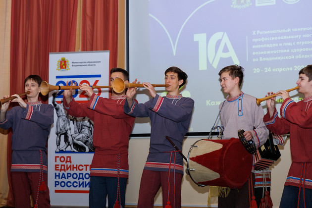 Творческими номерами участников церемонии открытия «Абилимпикс» приветствовали также народный коллектив «Ансамбль рожечников» Владимирского областного музыкального колледжа вместе со своим руководителем Александром Лебедевым, народный коллектив ансамбль танца «Росинка» областного колледжа культуры и искусства, мажоретки Городского духового оркестра Владимира.